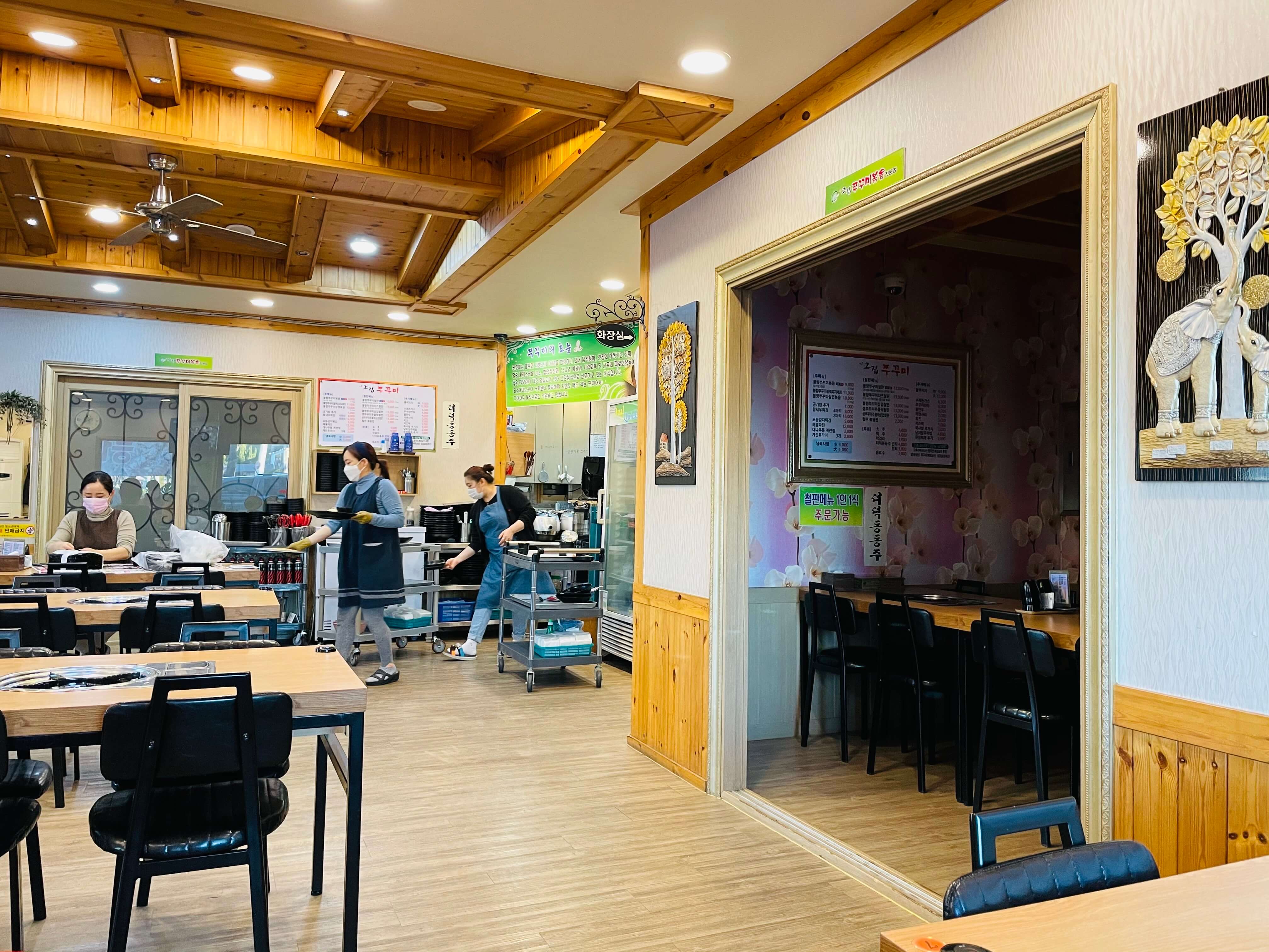좌식이 아니라 테이블, 의자가 셋팅이 되어있어 편하다.