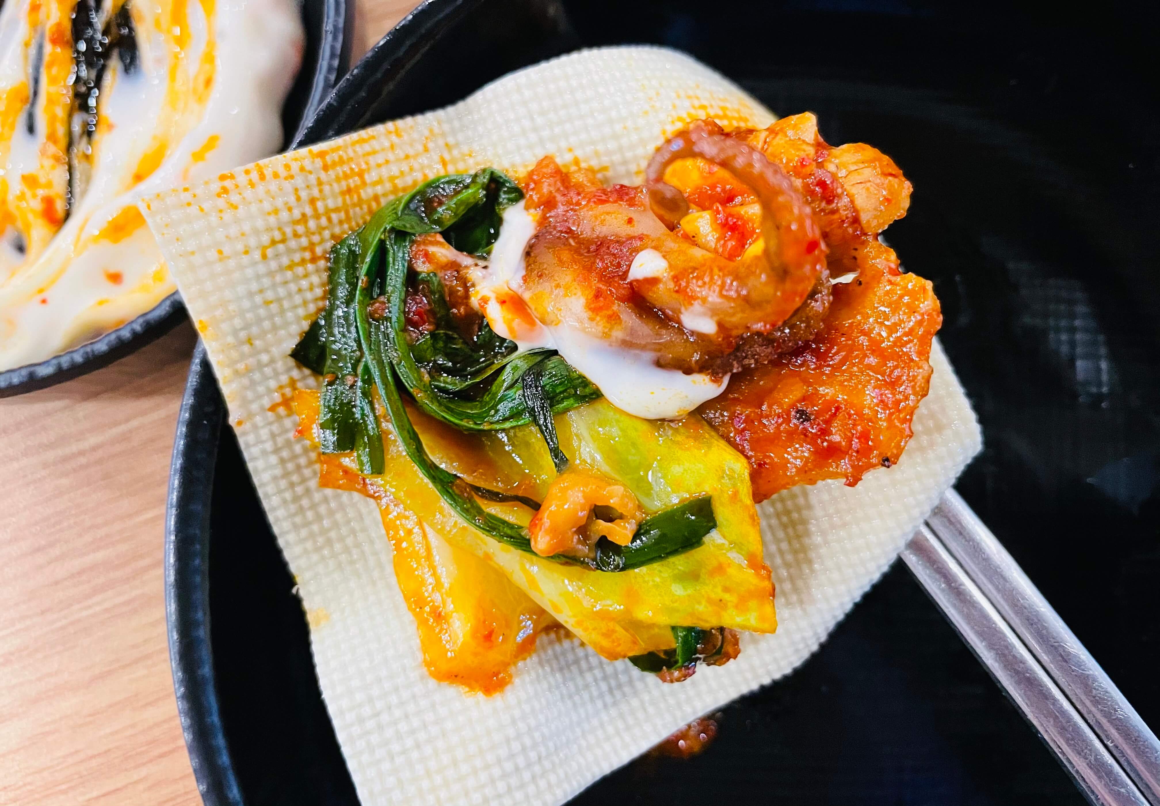 쭈꾸미+삼겹살이랑 마요 소스, 마늘, 된장.
